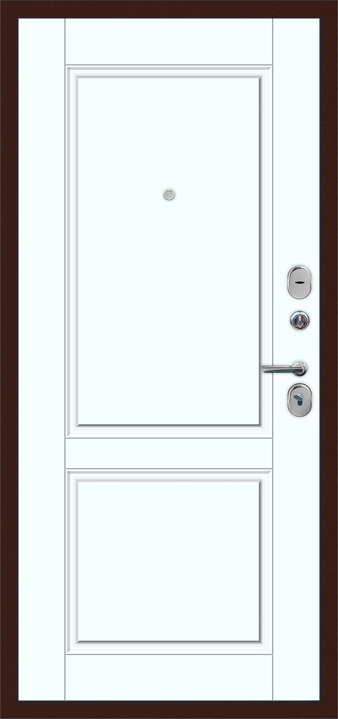 | Отделка наружной стороны У дверей с полимерно-порошковым покрытием существует возможность установки на улицу, если она предназначена для частного дома. | Цинк+Муар 8019 Багет 2 квадрата |