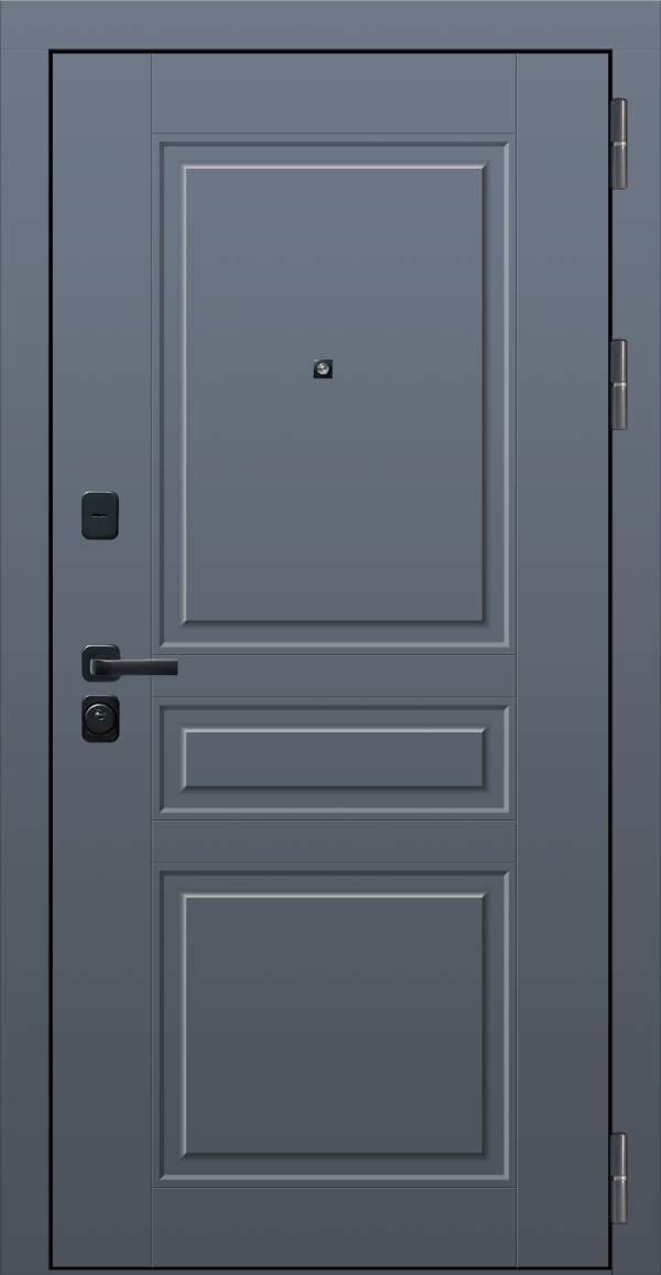 Технология беспустотного заполнения полотна и три контура уплотнения защищают от шумов и запахов со стороны подъезда. Надежная замковая система из замков 4 уровня взломостойкости усилена броненакладкой.