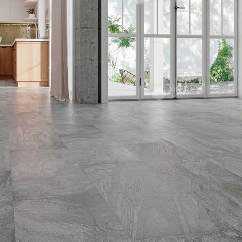 Кварцвиниловая плитка Alpine Floor Light Stone Хэмпшир дизайном под каменную плитку сочетает красоту природного камня и преимущества современного кварцвинила.