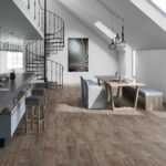 Трендовый Ламинат Tarkett Cinema Тейлор арт-винтажного стиля. Грубое тиснение, одновременное использование матовой и хромированной поверхности, необычайный эффект ручной обработки дерева и создание эффекта оптической фаски на доске.